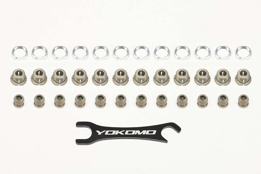 セットには1 台分のボール、ホルダー、ナットと、専用の8.0mm レンチが付属します。ボール2 セットの販売やレンチ単品もラインナップいたしますので、メンテナンス用などにご利用ください。