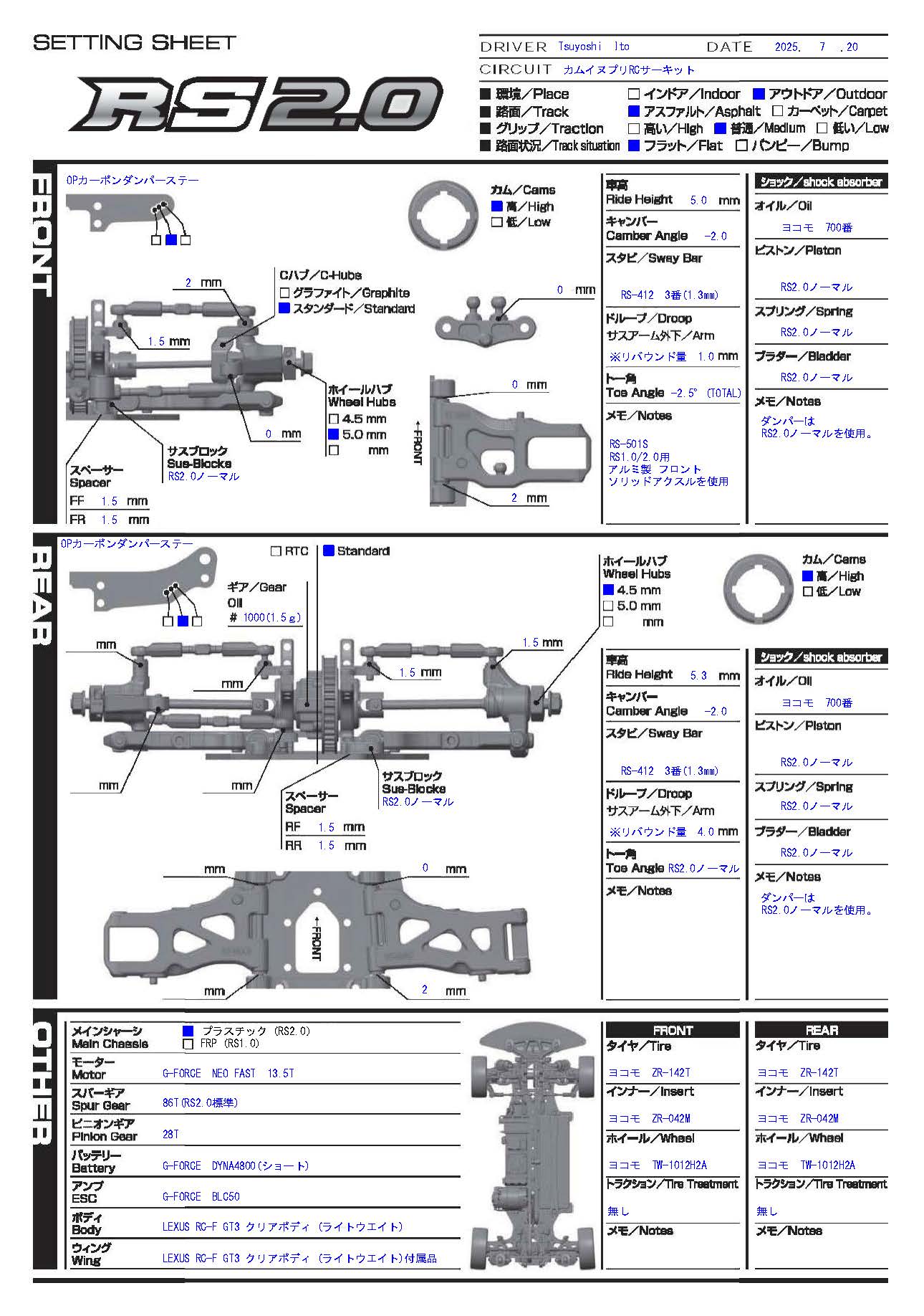 安定感を高める設定ながら、圧倒的な低重心化でレーシングスペックに仕上がったルーキースピードRS2.0。ツーリングカーの入門用として最高のパフォーマンスを発揮します。