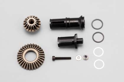 前後の駆動比を変え、ドリフトパッケージでカウンタードリフトの走行を可能にするFCD(フルカウンタードリフト)ギヤセットです。フロントの回転数に対してリアが1.3倍の回転となるハイスピードギヤで、アスファルトやコンクリートなどの低ミュー路面に対応しています。ノーマルに比べるとより繊細な操作が必要となります。エキスパート専用アイテム。