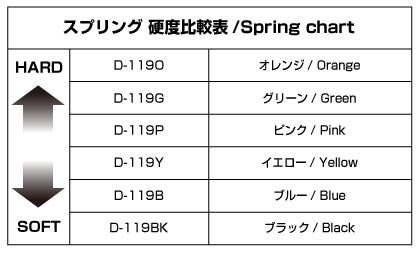 ドリフト走行に適したしなやかな特性の多重巻きロングスプリングです。通常のスプリングに比べるとレスポンスは落ちますが、比較的ロールしやすく、伸び側の戻りも穏やかで、安定した走行が可能になります。全長はやや長めの約25mm程度になっています。
