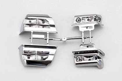 ドリフトパッケージシリーズのYUKE’S Team ORANGE with BEAST EYE C33 ローレルボディに装着するライトユニットプラパーツです。取り付け用の両面テープとアルミメッシュテープも付属。別売りのアクティブLEDライトユニットセット(D-065●3,800)などを装着することが可能です。