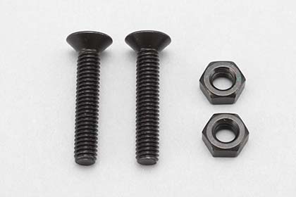 YRF001シリーズ用の標準パーツ、フロントウィングの取り付け用ネジセットです。4mm×22mmフラットヘッドスクリュー×2個、4mmスチール平ナット×2個。