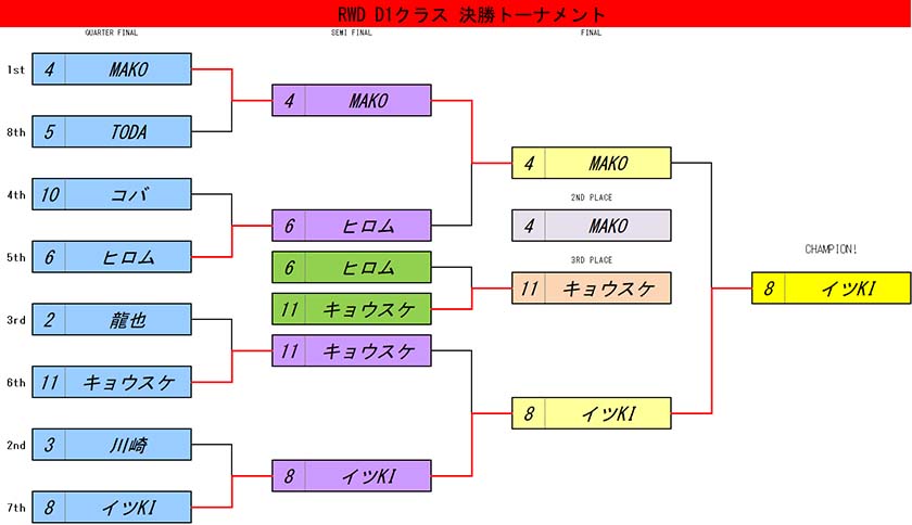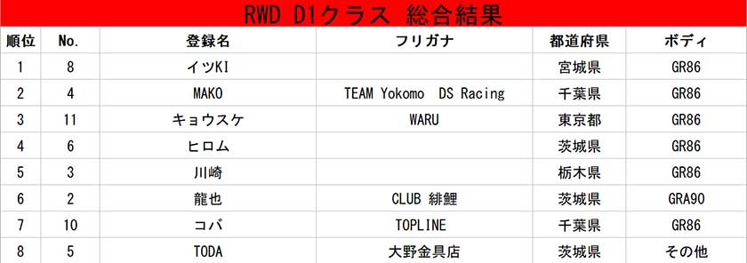 また、2025シーズンの最終戦ということで、D1クラスのシリーズポイントの行方も気なりました。ポイント争いは最終戦までもつれ込んでいましたが、最終的に優勝2回、準優勝2回、全戦で決勝トーナメント進出と高ポイントを揃えたMAKO選手がシリーズチャンピオンに輝きました。