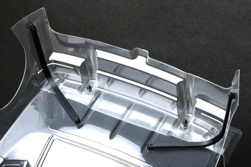 ツーリングカーのボディリヤ側で、サイドスカート部分の巻き込みを防止するステフナーです。樹脂製で軽量に仕上がっており、レースなどでの不用意なトラブルを未然に防ぎます。