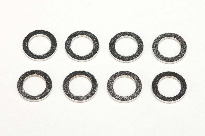 外径8.0mm、内径5.0mm、厚み0.8mmのスチール製シムセットです。8枚入り。