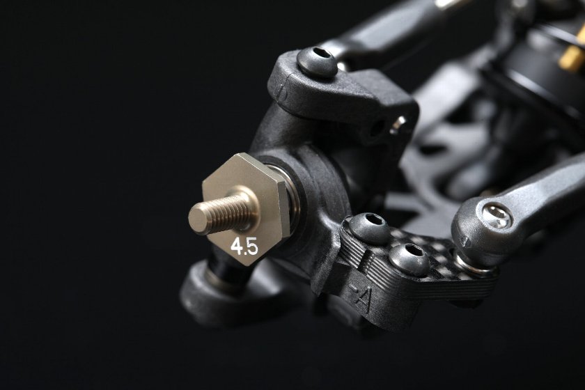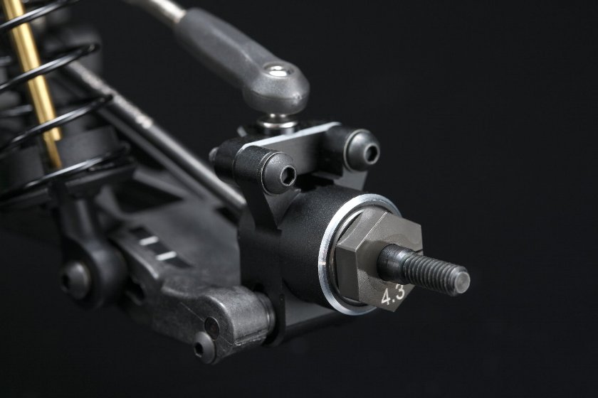 ステアリング周りをアルミパーツで固め、サーボの保持力とレスポンスをダイレクトにタイヤに伝えます。コーナーリング中でもトレース感が高まり、ハイグリップな路面でスピーディな走りが実現します。