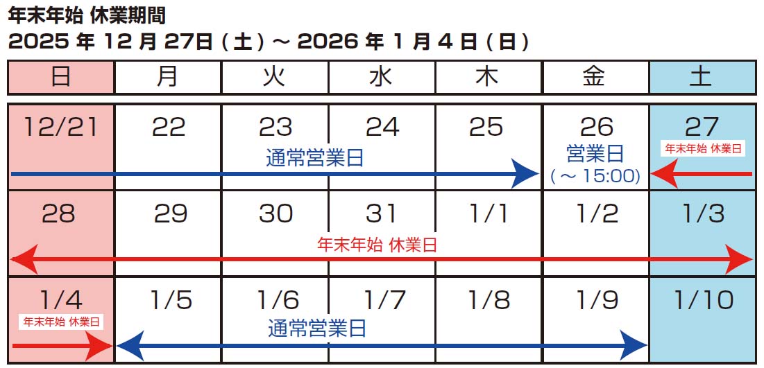 誠に勝手ながら、年末年始の休業を下記の通りとさせていただきます。なお、休業期間中は商品の発送、アフターサービス対応、ヨコモオフィシャルオンラインショップの対応も致しかねますので、予めご了承ください。